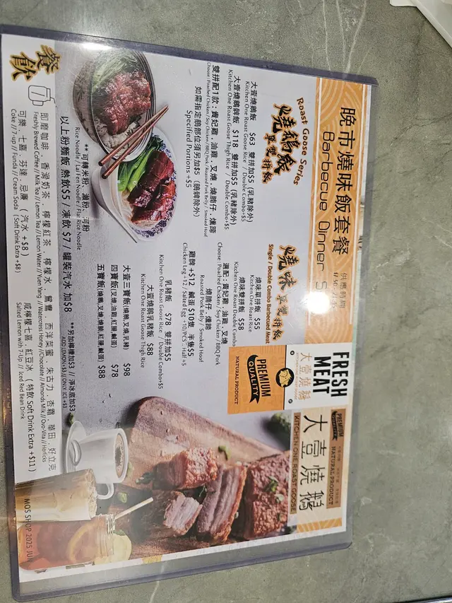 昨晚經過大喜燒鵝,忍不住被香氣吸引,決定來一份外賣犒賞自己。這家店主打燒味,菜單選擇豐富,價格也算合理。