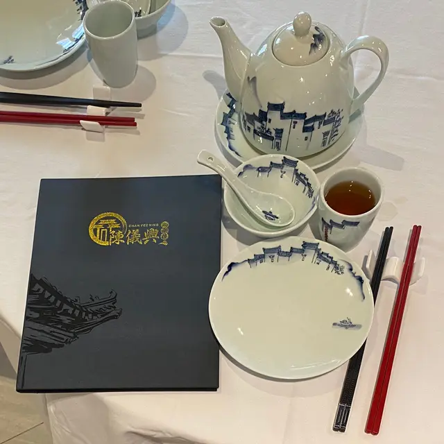 杯碟等餐具都非常精緻,而且全部都印有同一個風景圖案,相信就係潮汕一帶嘅風景啦!
