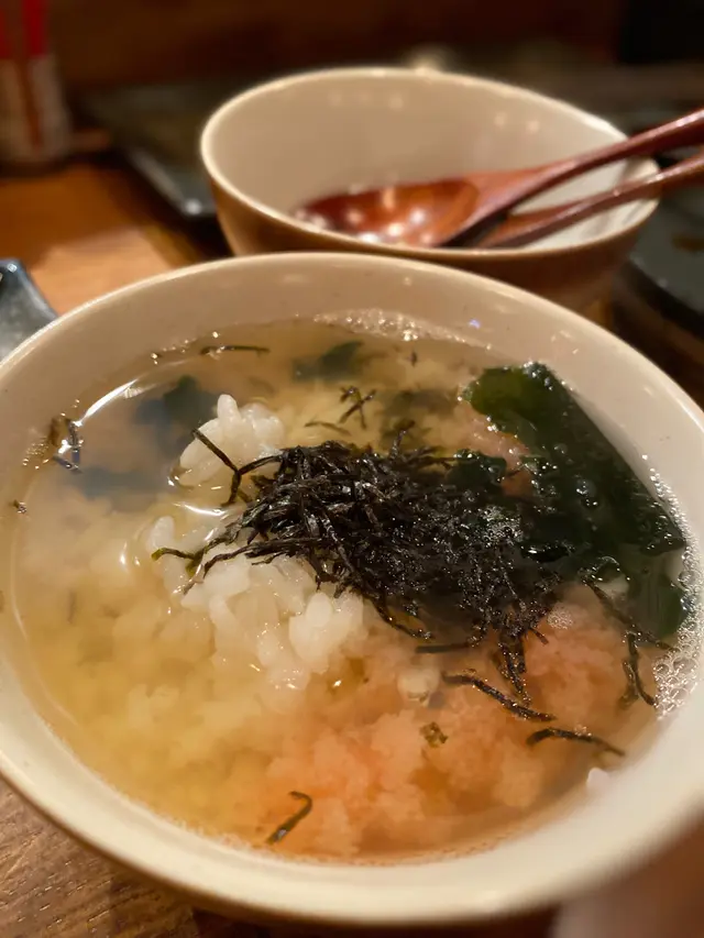 唔算好大碗,飯嘅份量同一個飯團差唔多 但係夠㗎啦因為食咗咁多串燒🤣 茶泡湯底好清 食完比較油嘅串燒飲返啖清湯真係好舒服