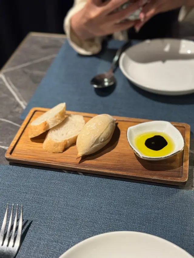 餐包即叫即烘,有兩款,一個較鬆軟,重香味,另一款比較硬身,脆口度。醬汁也非常開胃。
