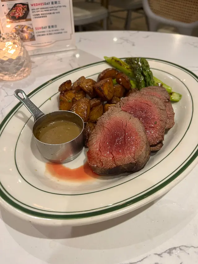 ✨阿根廷安格斯牛脊肉 +$55 唔算太滑但肉味好濃, 鴨肝砵酒醬更突顯肉味; 燒薯粒好出色外脆內軟