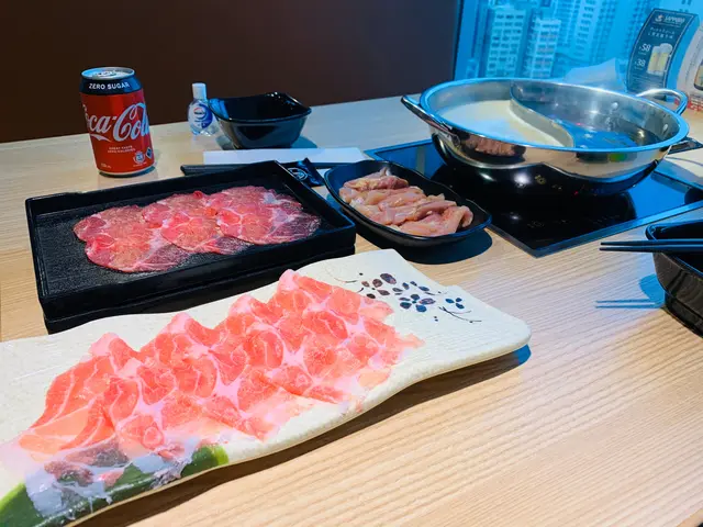無飯情侶搵嘢食👫🏻打邊爐唔駛煩🍲係呢個非常時期成場只有2-3組客人唔駛等就可以入座❣️應該都夠安全衛生👍🏻我地揀咗美國特選牛肉$268套餐❣️套餐包括美國進口牛肉👍🏻日本鹿兒島頂級黑豚肉👍🏻雞肉任食❣️至於湯底我地就揀咗鴛鴦鍋🍲有甜鼓油➕豚骨❣️開餐啦❣️