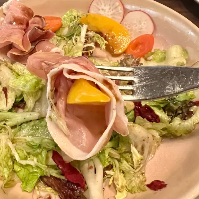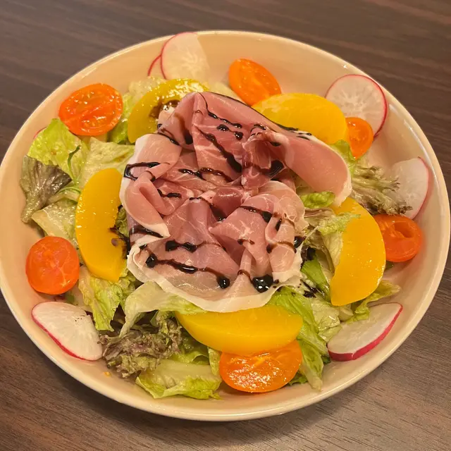 Parma Ham 香桃 是當然的主角,配合埋車厘茄、水蘿蔔,