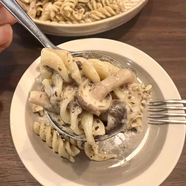 拌勻後,芝士片融和在螺絲粉中間,令意粉更香濃,好creamy