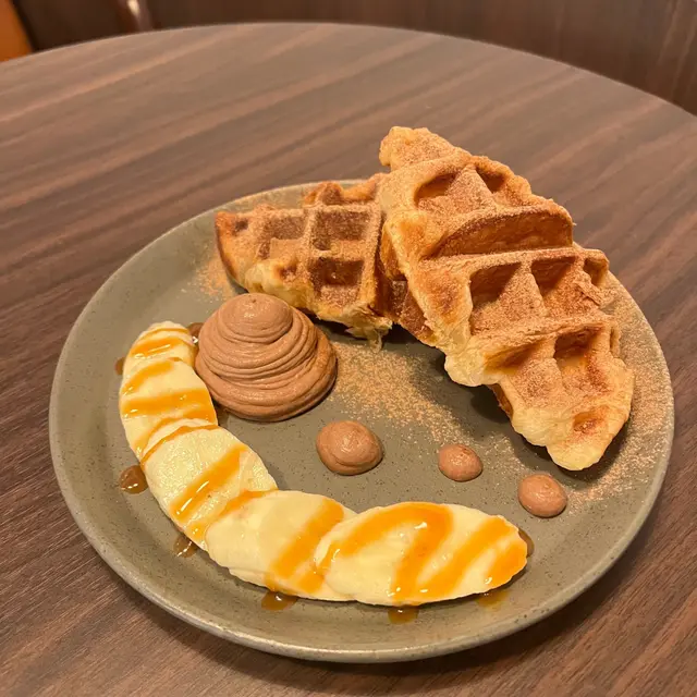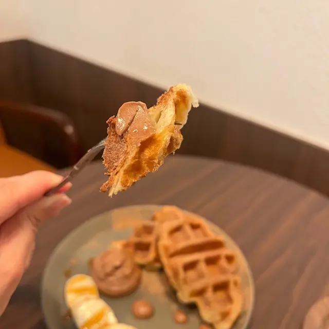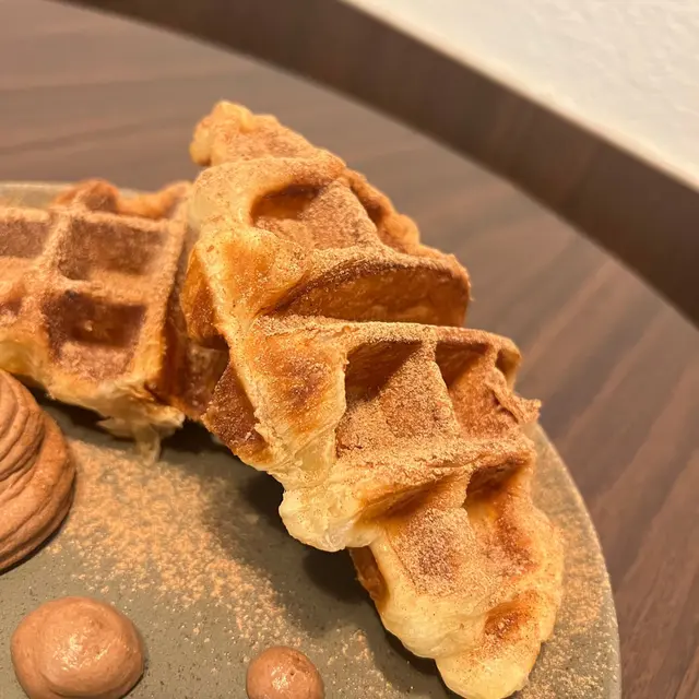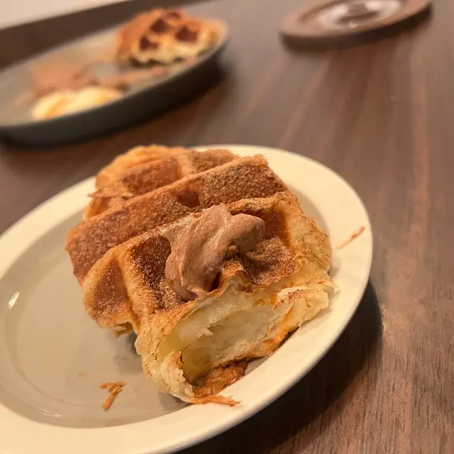 Croffle 灑上了肉桂粉,配埋朱古力忌廉,超級正