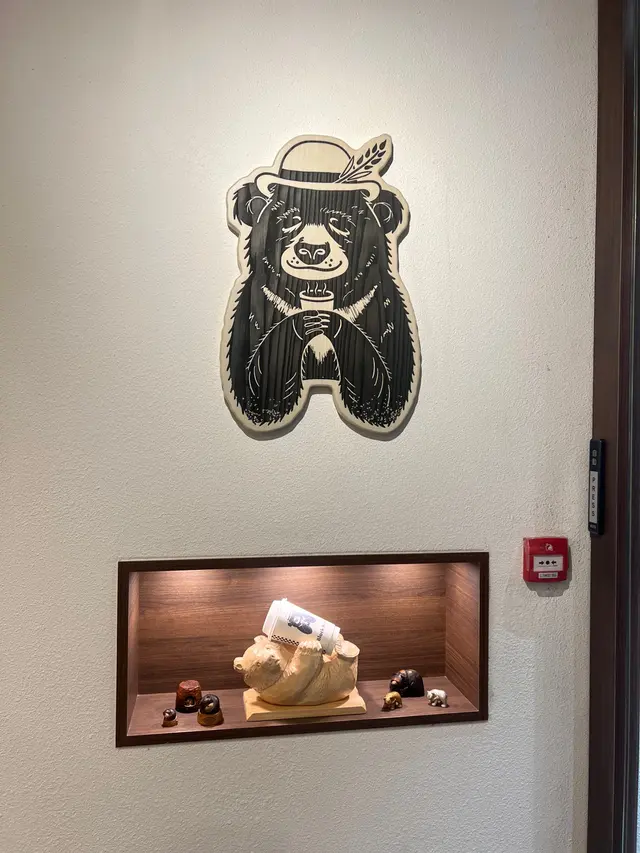 牆上的黑熊🐻捧住一杯熱騰騰的飲品,呈現出一種好溫暖好舒服的感覺