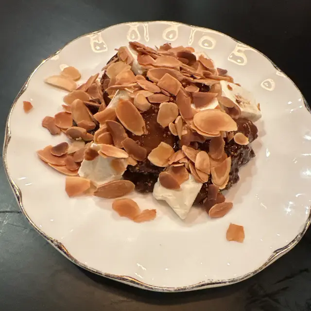 3)芝士黑醋無花果(西) - 呢款好創新,沾上黑醋無花果輕輕一燒,香甜與酸味充斥味蕾,加上香口杏仁片同香滑芝士,口感層次豐富