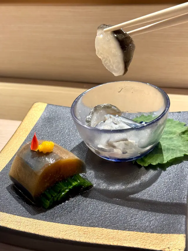 以白昆布和紫蘇花點綴,令人印象難忘