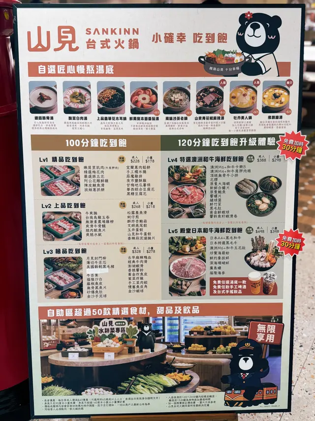 👉🏻山見台式火鍋湯式款式、自助美食區、任食食材和甜品都有好豐富選擇的任食火鍋