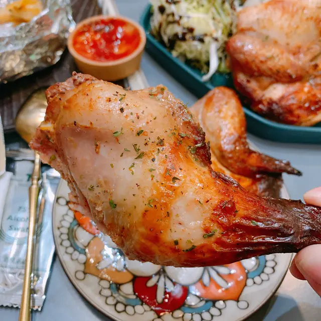 原隻美式燒春雞配黑松露薯蓉,春雞已幫忙開邊,雞皮燒得有點脆口,雞肉嫩滑又juicy,薯蓉有淡淡的黑松露味,味道不錯!