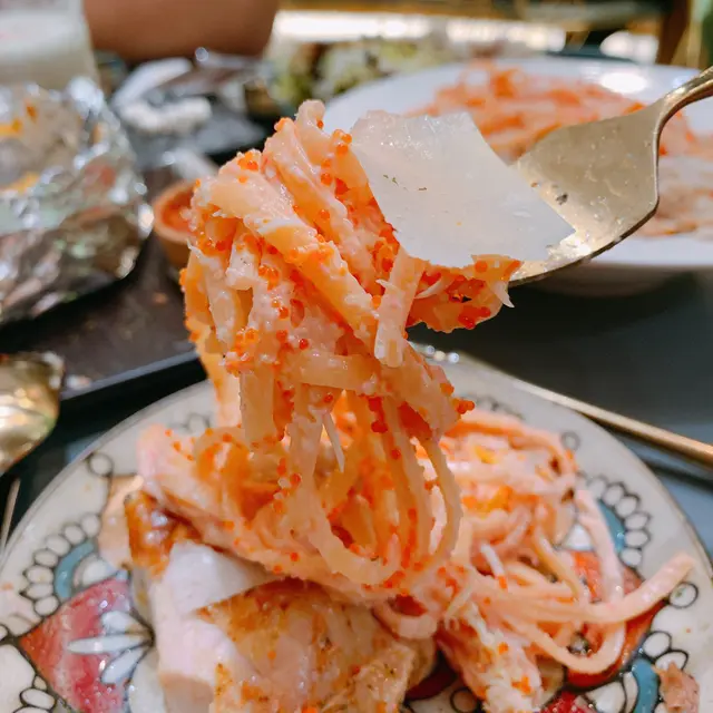 明太子蟹肉扁意粉,蟹肉和蟹籽推到成座山一樣,非常打卡able!意粉拌入明太子醬,非常creamy,有濃濃的明太子味,非常有口感!蟹肉有蟹殼碎,證明是真蟹肉,很足料!