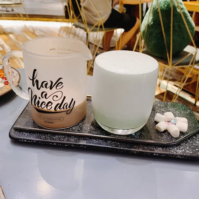 帽事0既,傻朱!,這款飲品特別又好玩,來到時分開了兩杯,一杯是薄荷焦糖奶,而另一杯是朱古力!將朱古力倒入裝著奶的那杯,上面的泡泡會變高,而且會高過杯的高度,但又不會瀉出來,非常特別!