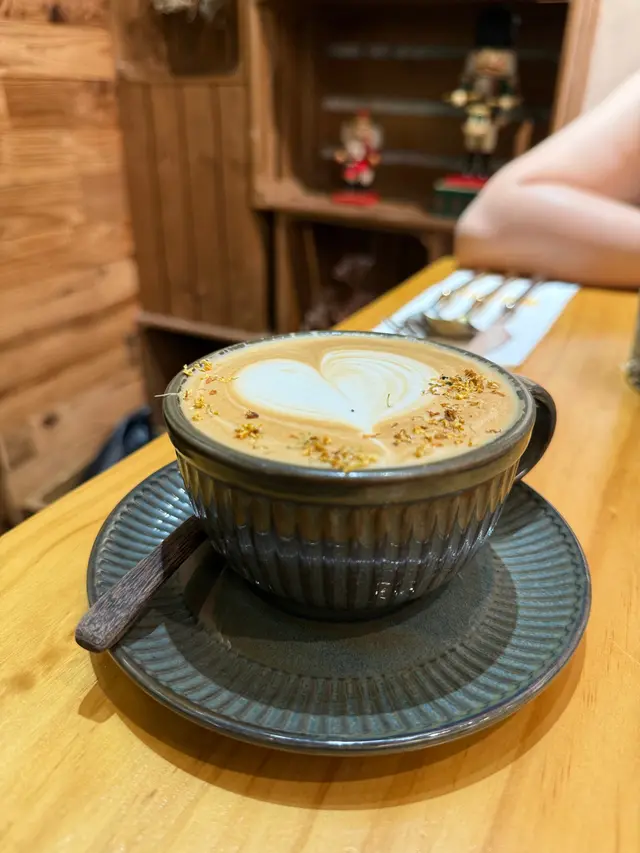 ❤️桂花鮮奶咖啡:我最近戒飲凍嘢,所以叫咗熱嘅桂花鮮奶咖啡。桂花香氣突出,奶香+咖啡苦韻夾得好,層次豐富。