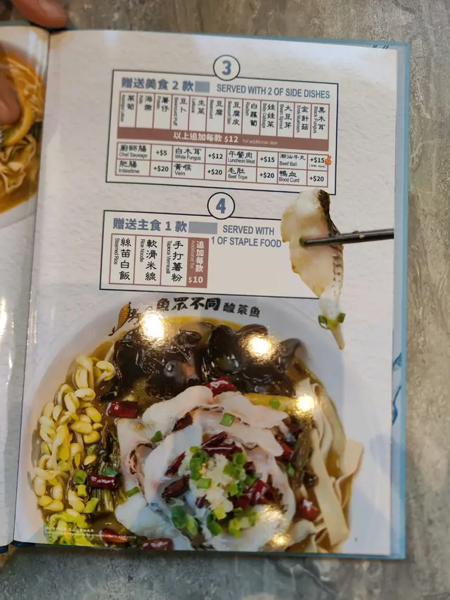 酸菜魚湯底鮮甜,微辣,鱸魚片厚實鮮嫩,而且不易碎裂。豆腐皮好香豆味,份量又多。黑木耳,爽脆好食。薯粉係分開上的,唔怕浸喺湯度會淋曬,值得一讚。