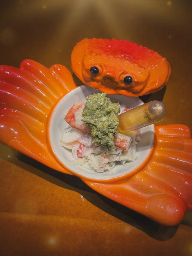 松菜蟹膏的濃郁與微酸的醋汁形成完美平衡