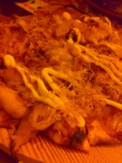 我們還點了和風雞柳薄餅燒$48薄餅燒先用蕃茄醬塗一層,然後把用日式醬炆過的雞柳放在面,其他配料還有栗米粒,冬茹絲,洋蔥絲,芝士,再一併拿去焗,之後再灑上木魚絲,正!整個薄餅燒被分成6塊,餅底很薄、脆,再雞柳帶有微甜,栗米和洋蔥為這帶來咬口,有脆,有爽,有甜,美味!