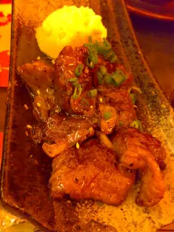 接著的是蒜片一口牛柳$38這個是做得不錯的菜式,牛柳切得頗大粒,大概一客7-8粒,吃下不算太稔,但不難咬開,挺有肉味和肉汁;而醬汁才是最出色的,用以附和的燒汁中,帶有柚子蜜的甜,感覺清新,而且吃完很舒服,不會整個口腔都是咸味,柚子蜜的加入是非常好,而蒜片能保其味道,但不會太強,將以上三者一起吃的話,味道很正!