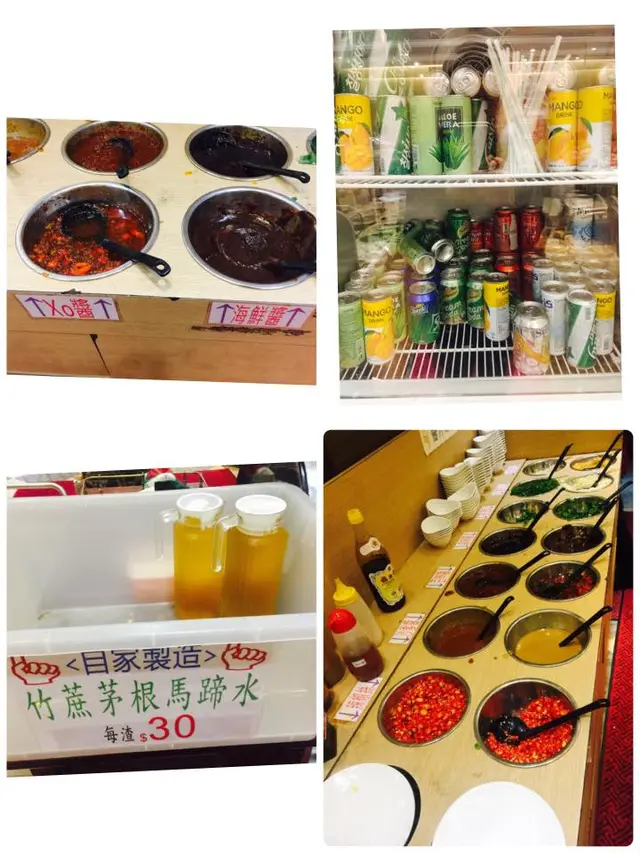 喝完湯暖了胃後,桌邊服務的大姐邊準備海鮮蒸氣石鍋的食材時,大姐快手的將最後必食粥底的米粒撒入鍋底,神速道我都來不及拍照,同時送上了半隻脆皮乳鴿,可以讓我們海陸共享,在大姐準備的同時,我們也去準備了沾醬,這裡的沾醬竟然有XO醬讓饕客無限取用,各式飲料也是無限拿取,超抵食