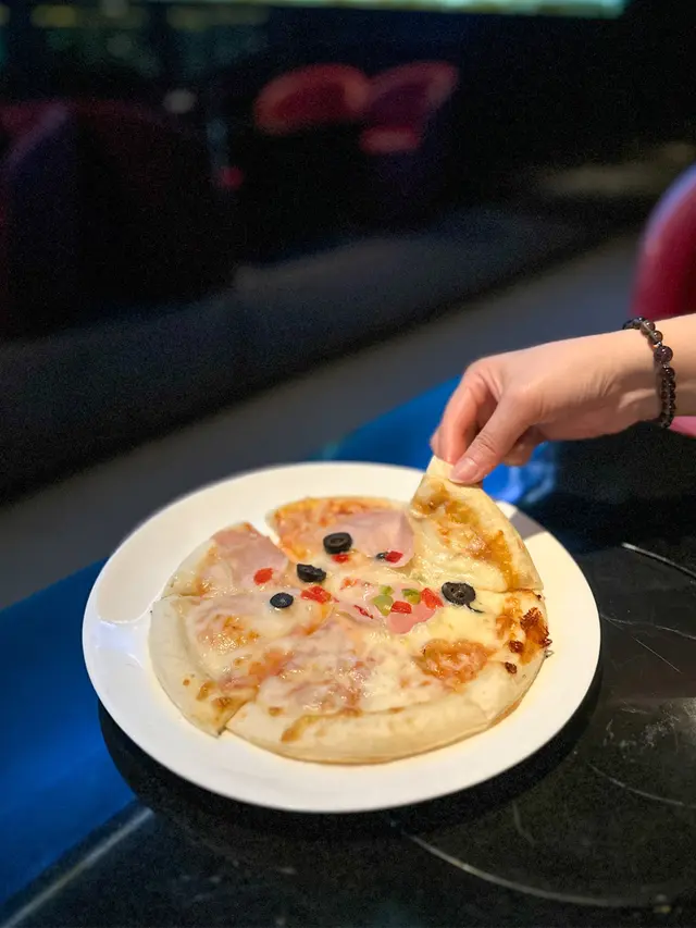 有大量芝士同埋火腿,加少少黑橄欖同埋醃漬辣椒作點綴!