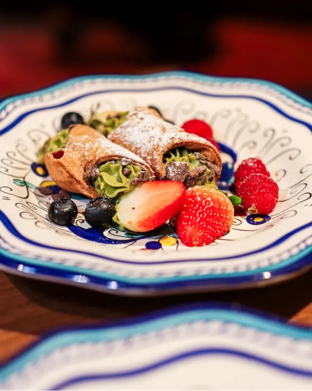 卷餅酥脆可口,入面包裹住開心果忌廉及朱古力粒,香甜可口😝
