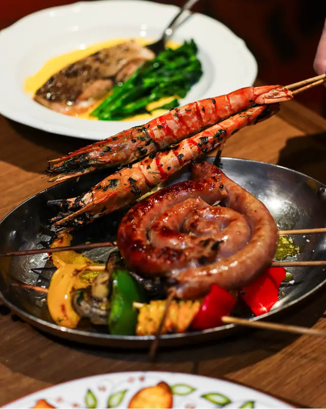 BBQ主題當然唔少得串燒啦✨ 有齊大蝦、意大利腸、三色椒蘑菇粟米串,大蝦新鮮彈牙,腸仔味道鹹香,份量十足👍🏻