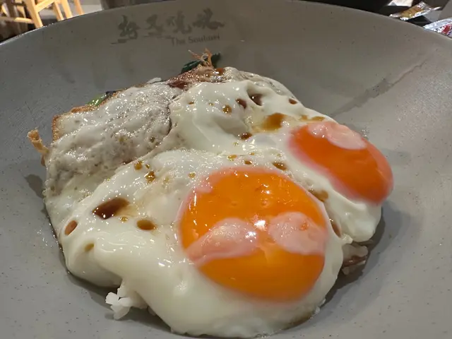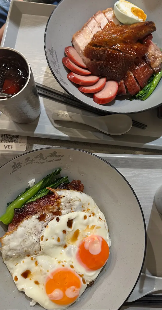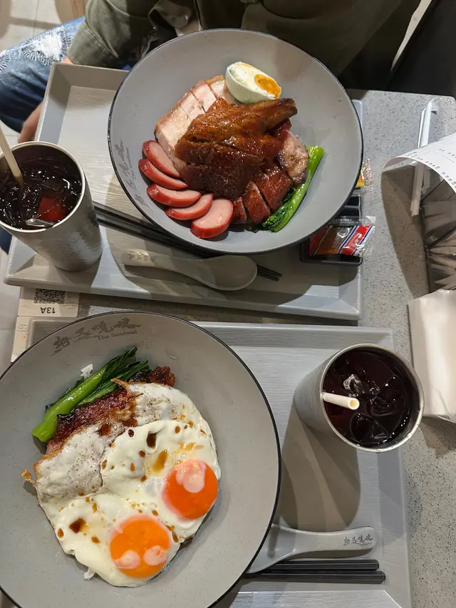 有燒鵝、叉燒、腩仔,紅腸和半隻鹹蛋。霹靂燒腩仔果然名不虛傳,肉質爽嫩,皮薄鬆脆,咬下去時「索索聲」,非常脆!咬吓肉時瞬間釋放出肉汁,口感極為滿足。還有惹味嫩肉的燒鵝、極品的叉燒、美味的紅腸和半隻鹹蛋。整碗飯又是令我們吃過不停。