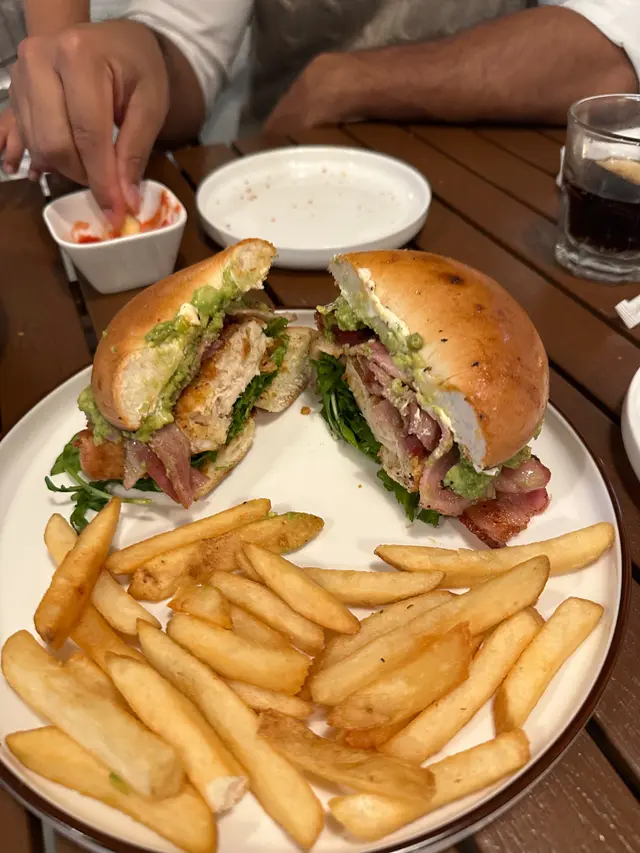 Bagel好有咬口~雞肉超嫩肉汁迫晒出嚟,炸到外脆內軟👍🏻🤤配搭埋蔬菜冇咁油膩🥑牛油果熟到啱啱好配bagel一流啊😝培根煎到啱啱好唔會太乾🥴超推薦😝