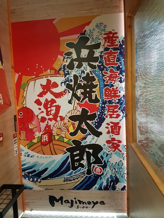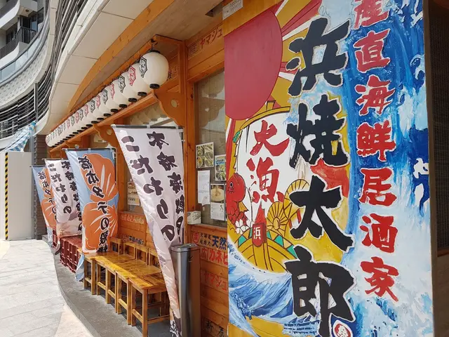 「浜燒太郎」的門面其實頗吸引,橙黃色的牆身掛滿色彩斑爛的海報旗次,天花處還有一排和式燈籠,居酒屋的況味甚濃。