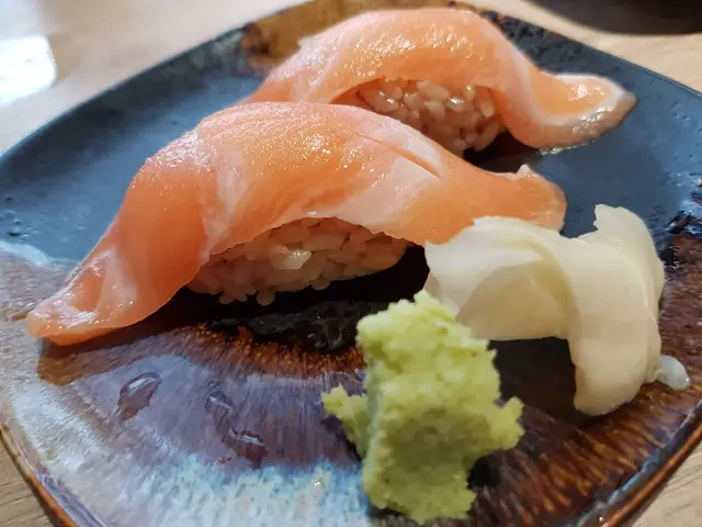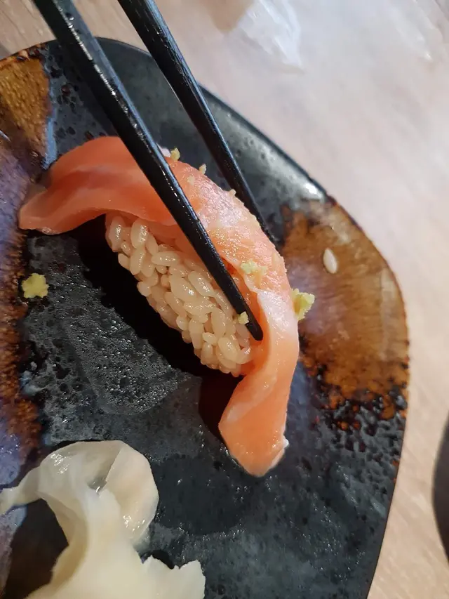 跟拉麵送的兩件壽司普普通通,三文魚稍薄與不夠鮮,有趣的是這裡的壽司居然採用傳統特色的紅醋米,遺撼區區的紅醋米卻不足彌補食材的缺陷。