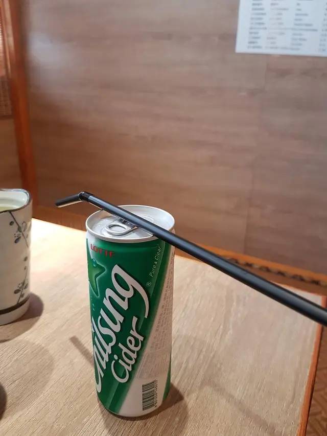 老伴的吉豬飯是不過不失。飲料方面他先叫了杯小巧的冰紅茶,卻被小的發現原來有青檸梳打。將自己的配額送給老伴,出場卻見居然是韓式的罐裝飲品,味道還可以,當然與真正的青檸梳打沒法比。