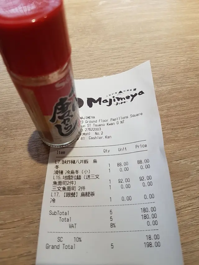 地獄拉麵的賣相不俗,除了至愛的和風溏心蛋,還兼附一塊紫菜。無奈食物入口才見真章,湯底肥油多卻不夠濃厚,最糟的則要數拉麵的麵身,那種乾硬粗鞋絕對是粗製濫造的劣質來貨。幾經辛苦小的才勉強征服了大半份。