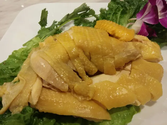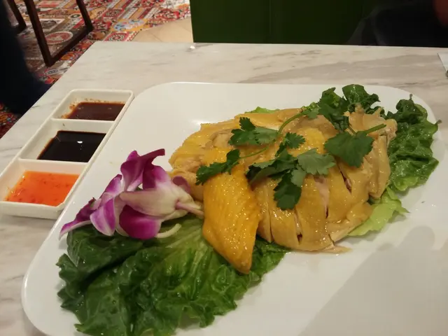 海南雞半隻,份量都不少,金黃的外表,油潤有光澤,已令我垂涎,海南雞剛好熟,肉質嫩滑,還有三個秘製醤汁跟上,三款味道令海南雞味道都各有特色。