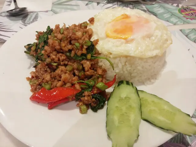 香葉肉碎煎蛋,肉碎有香葉、豆角粒及紅椒...等,還有2件青瓜。