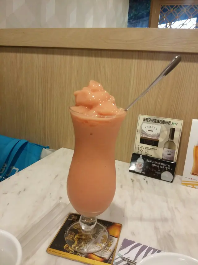 帶著橙色的番石榴沙冰,不會很甜冰冰凍凍的帶著番石榴的味道,好味。