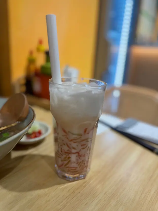少甜嘅珍多冰 加上濃郁嘅盒椰奶 粉紅色嘅增多係自家製 口感煙靭