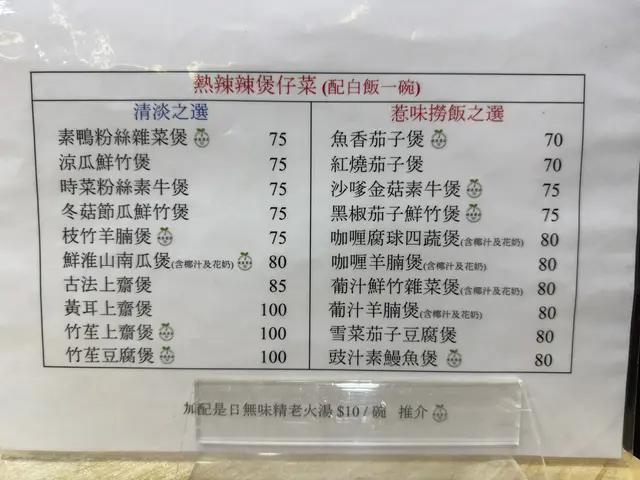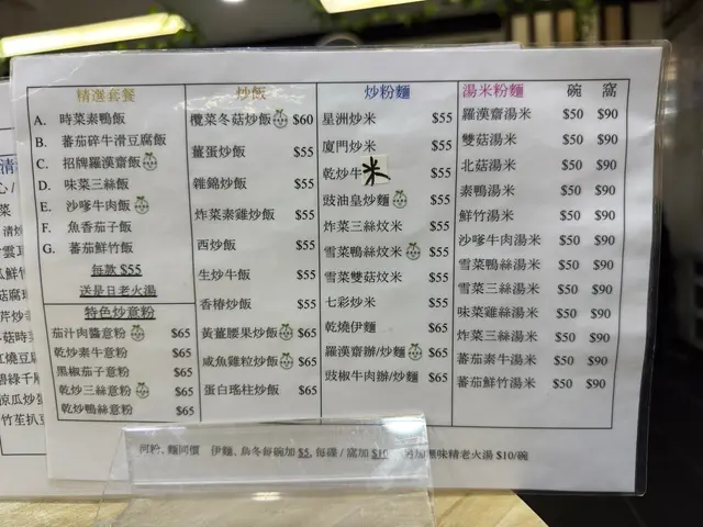 餐牌上都幾多款式,有素湯羹、煲仔菜、小菜、齋滷味同埋各類炸物等