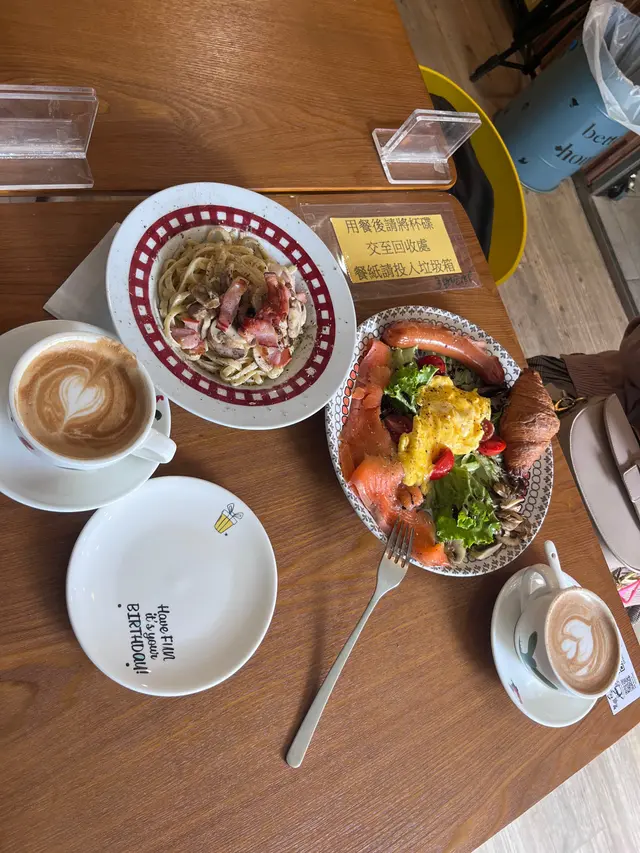 而Main course 叫咗本日午餐,即All Day Breakfast 及 卡邦尼意粉,可惜意粉較乾,近乎沒有卡邦尼汁,亦都冇乜忌廉味。而All day breakfast 亦都冇乜驚喜,只係個炒蛋炒得好滑。