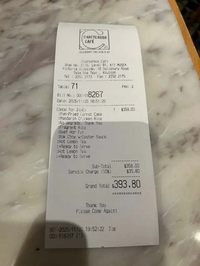 黑醬油炒蘿蔔糕😋海南雞飯正!🤤 florachan1029等級42025-11-20 關注 今晚叫左個性價比好高既二人套餐。黑醬油炒蘿蔔糕,比原本想像中一份份蘿蔔糕有啲唔同,佢係碎炒,非常特別。用醬油炒唔會太鹹,又有啲甜味,幾有驚喜。主菜方面,文華海南雞飯無疑是一道亮點,水準高。雞肉嫩滑恰到好處,肉質滑嫩多汁,雞皮油脂豐盈,搭配特製的醬汁。這道人氣菜式果然名不虛傳,令人懷念新加坡的味道。而香炒河粉燴牛肉則結合了牛肉的鮮嫩和河粉的潤滑,醬汁豐滿,意外地好吃。 最後,蠔油小棠菜作為配菜,清新爽口,為整道套餐增添了一抹健康氣息。 整體而言,呢個套餐係色、香、味到非常之平均,滿足了味蕾之餘,用餐過程都頗為滿意。用餐環境亦都很舒適,環境優雅。 以上食評乃用戶個人意見 , 並不代表OpenRice之觀點。讚好分享黑醬油炒蘿蔔糕😋海南雞飯正!🤤 Chatterbox Café (K11 Musea) https://s.openrice.com/QrbT0lanV00檢舉 張貼 評分4味道4環境4服務4衛生4抵食用餐途徑堂食