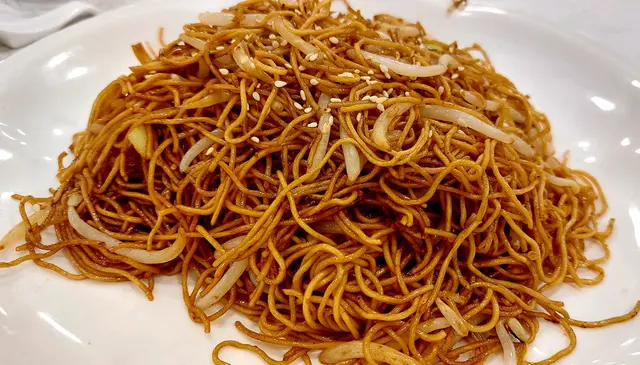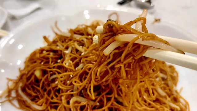 “豉油王炒麵”,雖然簡單,只幾條牙菜仔、洋蔥、韭黃,但夠香,麵乾身,碟底一滴油一滴豉油都沒有,廚房炒功不錯。