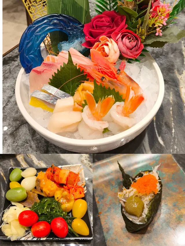 選擇赤海蝦,甜蝦,赤貝,北寄貝,北海道鮮帶子,希靈魚,金倉魚腩,油金魚和三文魚,致喜歡食甜蝦,新鮮又鮮甜,三文魚夠肥美又嫩滑。