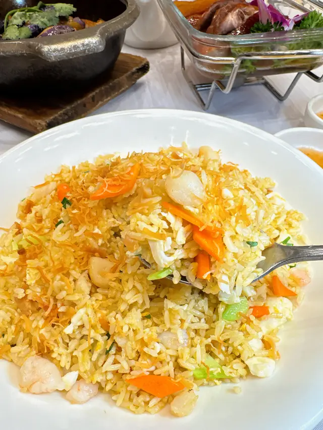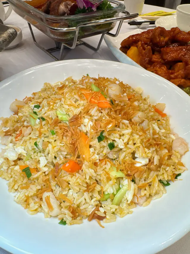 炒飯配料有貝柱、瑤柱、蝦仁、蛋白、菜粒好足料,炒得好乾身有鑊氣