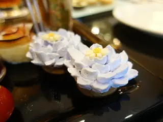 玫瑰蘋果酥伴黑糖蜂蜜醬,玫瑰蘋果酥造型宛如正在綻放的玫瑰花一樣,帶來視覺及味覺雙重享受,它的入口帶淡淡怡人玫瑰及蘋果芳香,更可隨意添加自家調製的黑糖蜂蜜醬,多種香氣交織在唇齒間徘徊。