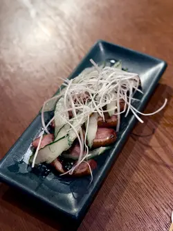 京燒醬烤煙鴨胸肉煙燻色澤醬光亮,口感鬆軟
