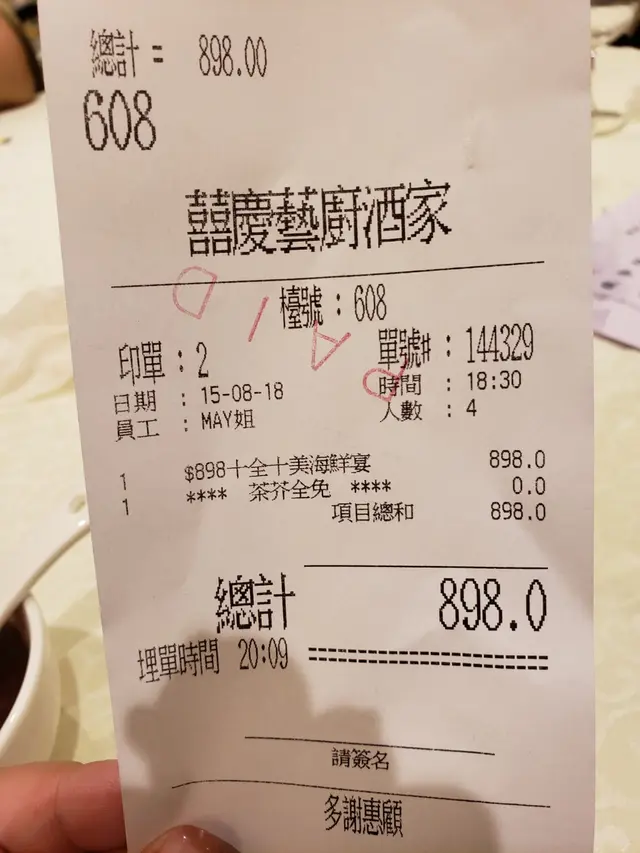 10全10美果然名符其實 lam mei kwan等級32018-09-21359 瀏覽 關注 同屋企人去左土瓜灣囍慶酒樓食898蚊10全10美套餐(4人份),畢竟小妹要宴請長輩食飯又點可以是是旦旦呢~呢個4人餐提前訂好左,坐停冇耐就成檯都係,每落一碟我嫲嫲就喺度哇哇聲,仲一邊食一邊 豎起隻手指公,起勢禁讚好新鮮,食到佢笑得好開心。講番啲嘢食先,個上湯龍蝦伊麵底啲龍蝦絕不馬虎連個伊麵底都超級好味囉,一滴汁都冇浪費。金銀菜苗都係超級香,乳鴿個味調得剛剛好,一上檯就忍唔到口飛擒大咬,仲有海蝦,鮑魚等海鮮全部都超鮮味下次請客可以再ancall絕對唔失禮以上食評乃用戶個人意見 , 並不代表OpenRice之觀點。讚好分享10全10美果然名符其實 囍慶藝廚酒家 https://s.openrice.com/QrbT0XaSm00檢舉 張貼 評分5味道5環境5服務4衛生4抵食用餐途徑堂食