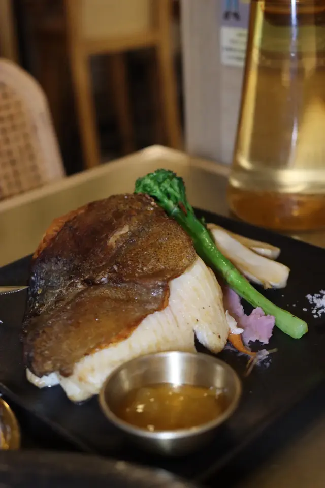 比目魚煎得恰到好處,魚皮香脆,魚肉好厚身,口感嫩滑,蜜糖柚子醬酸甜開胃,平衡了魚油的膩感,值得一試。