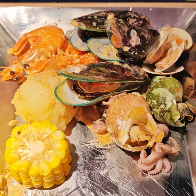 海鮮袋有蜆、青口、🐚翡翠螺、八爪魚🐙、蝦🦐、甜粟米🌽同埋薯仔🥔可以無限添加,而且有🏅招牌卡彊汁、檸檬🧄大蒜汁同埋檸檬🍋胡椒汁三款醬汁可以揀。啲海鮮🐙好肥美鮮甜,配埋佢哋嘅招牌卡彊汁🌶️少少辣多多香,十分之開胃😋惹味。