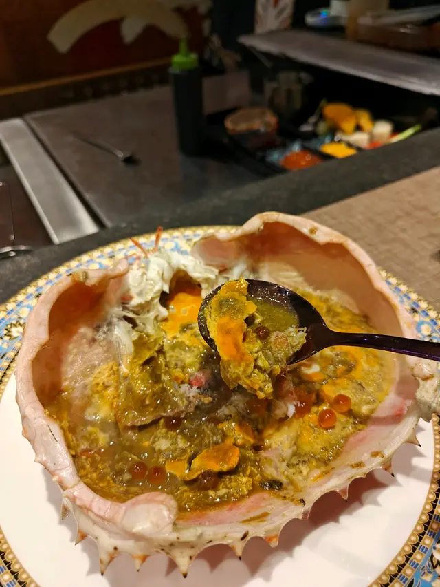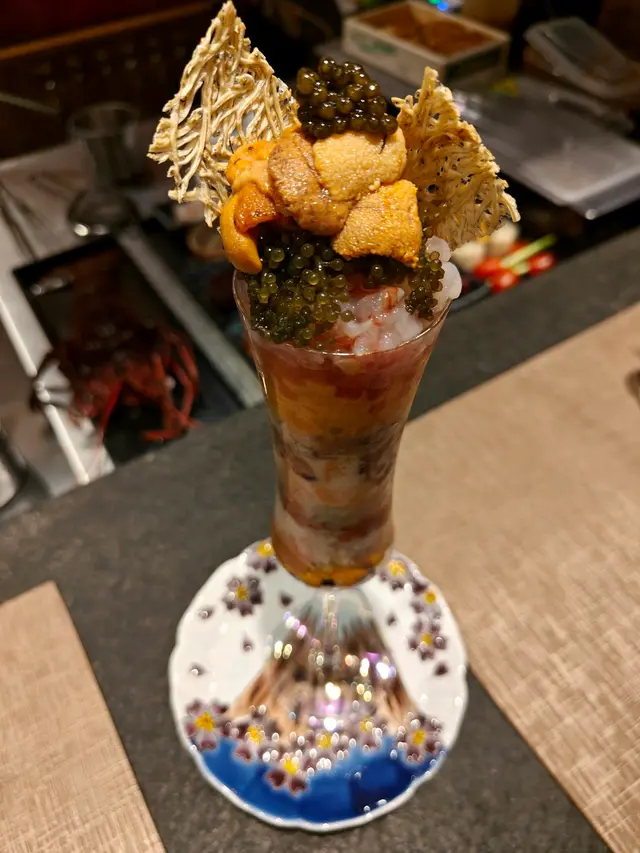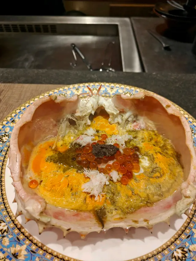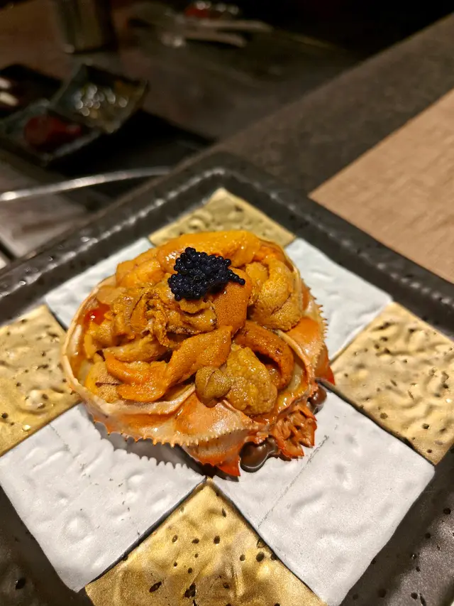 火焰海膽甲羅燒,完完全全有別於坊間既甲羅燒,出場時仲會好似表演魔術咁出場,睇得又食得,呢度食材既用料會令到你驚艷,大量海膽,蟹膏,魷魚,三文魚籽mix埋食,