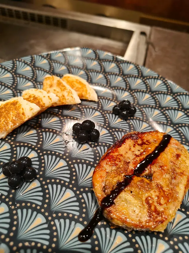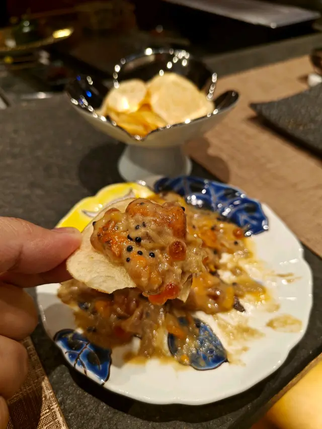 香煎鵝肝配山芋片,師傅有心思地整左d藍莓味既份子料理去中和鵝肝過份既油膩感,但呢度既鵝肝都唔會太膩,因為仲mix左星鰻,海膽在内層!又係心機手工菜式。配埋山芋片食,口感更多變化,又綿又脆!