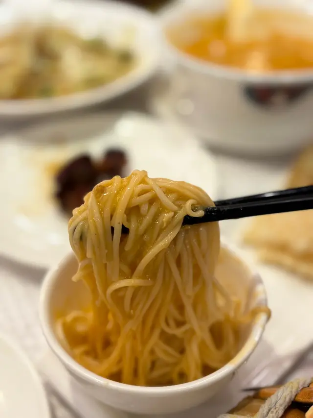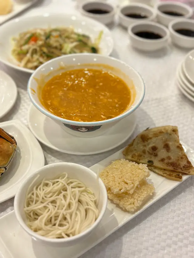 3️⃣蟹粉瀑布配上海麵、窩巴、手抓餅🦀