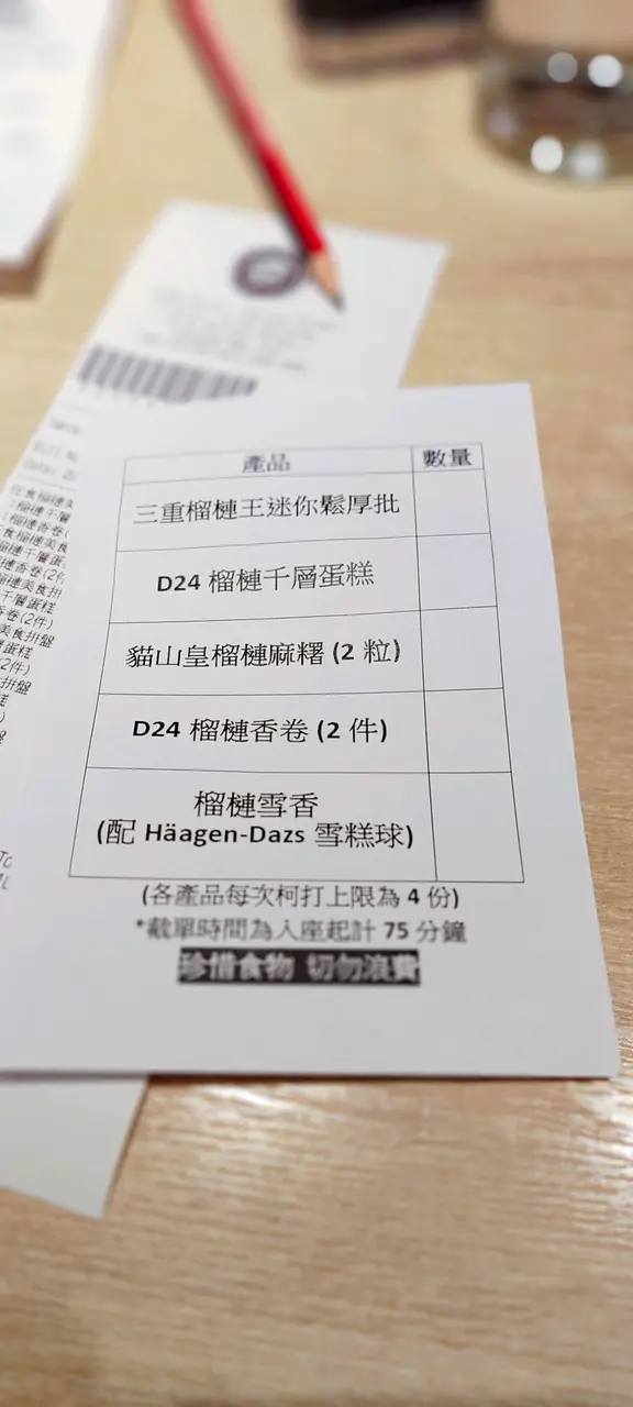 朋友訂位前已獲告知榴槤麻糬已售罄